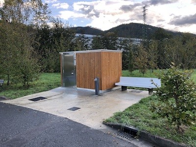 - Sol antidérapant avec forme de pente pour évacuation des eaux jusque sous la cuvette.