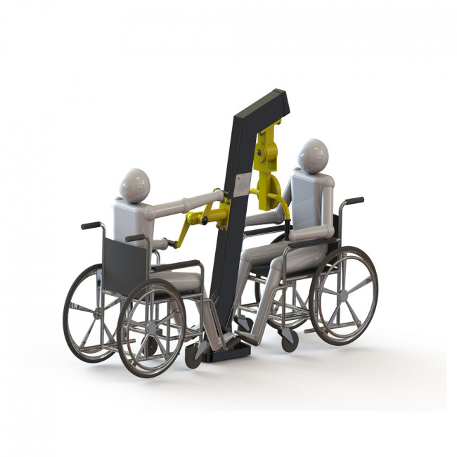 Ce double équipement de fitness PMR est un appareil de sport en plein air, conçu pour les personnes à mobilité réduite.