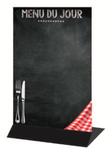 Vous pouvez poser sur table afin d'afficher à votre client le menu du jour ou un autre