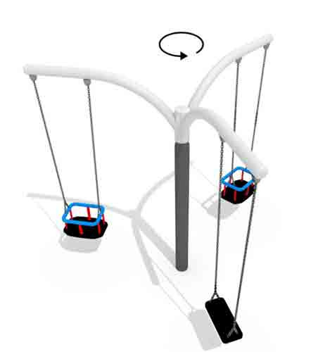 Il est composé de deux sièges bébé suspendus sur chaine et d’un siège plat suspendu sur chaine.