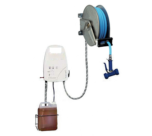 Équipé d’un système anti-pollution, d'un pistolet antichoc ainsi que d'un support en acier inoxydable pour bidon rectangulaire de 5 litres.