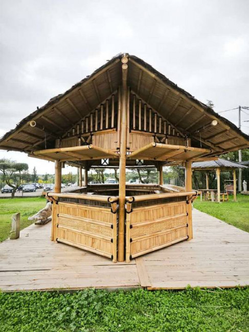 Idéale pour les hôtels, restaurants, campings ou événements, cette paillotte en bambou attire le regard et invite à la détente.