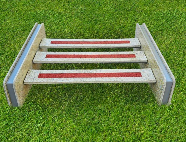 L’obstacle est composé de 3 lattes en matières recyclées de 10 mm d’épaisseur, recouvertes d’un revêtement tartan.