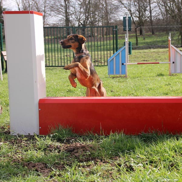 Notre mur d’obstacle en acier galvanisé pour chien s’intègre facilement dans un parcours agility extérieur, un caniparc ou une aire de jeux canine.