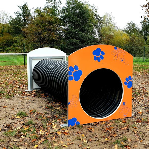 Ce tunnel pour parcours canin trouve naturellement sa place dans un parc canin, une aire de jeux canines ou un parcours de sport canin en plein air.