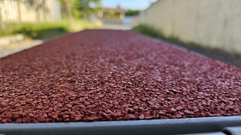 Le plateau de la passerelle est recouvert d’un revêtement en tartan antichute, spécialement pensé pour offrir une surface antidérapante et confortable.