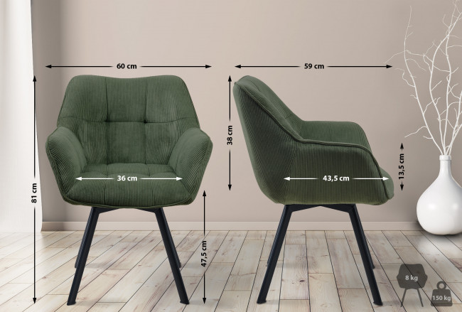 Le revêtement en velours côtelé confère à cette chaise un aspect luxueux tout en étant résistant et facile à entretenir.