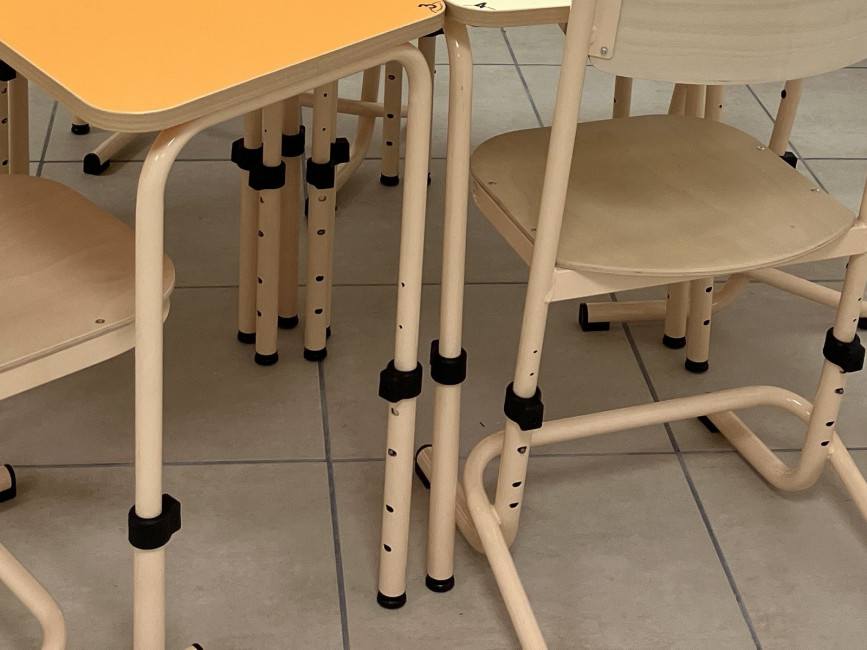 Les quatre pieds réglables permettent de passer facilement du travail en groupe au travail individuel.