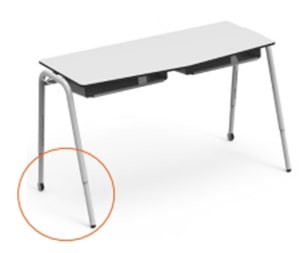 La table Team Double-E dispose de deux roulettes avant et de deux pieds arrière réglables en hauteur.