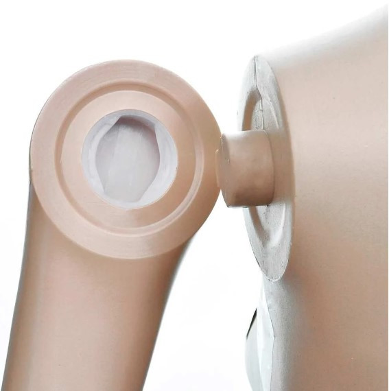 Le mannequin est constitué de quatre parties assemblées : la tête, le torse avec les jambes, ainsi que les bras gauche et droit.