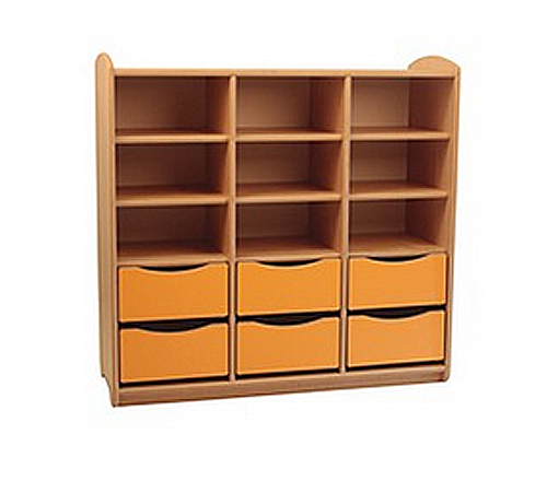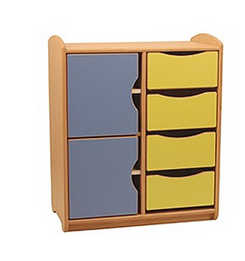 Les portes et tiroirs sont en MDF mélaminé 2 faces épaisseur 19 mm dans les couleurs suivantes : Cerise, Anis, Safran et Bleu.