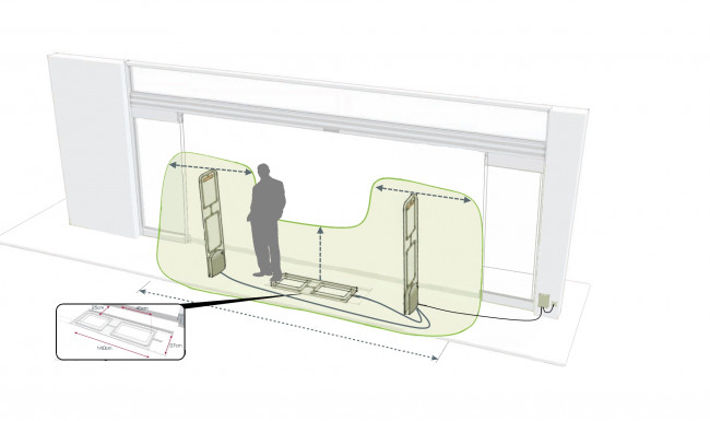 L'antenne au sol peut être utilisée seule ou combinée avec des antennes verticales pour une zone de détection sur mesure adaptée à votre magasin.