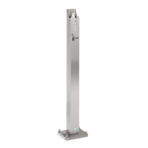 Borne à gel hydroalcoolique en Inox ou Aluminium ultra-robuste, deux modèles au choix, convient en intérieur et extérieur.