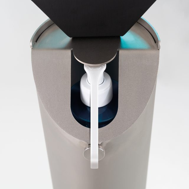 Cette colonne distributeur de gel hydroalcoolique permet à vos collaborateurs ou clients de désinfecter régulièrement leurs mains.