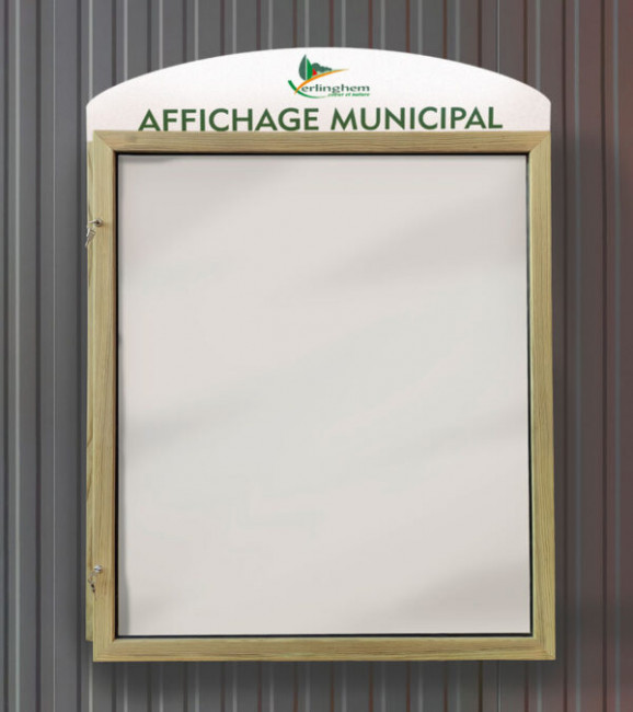 vitrine d'affichage en bois bandeau galbé est un support de communication visuel .