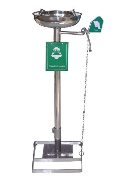 Cette douche oculaire avec piedestal, pédale et commande est idéale pour les laboratoires, le milieu médical, les industries, les ateliers.