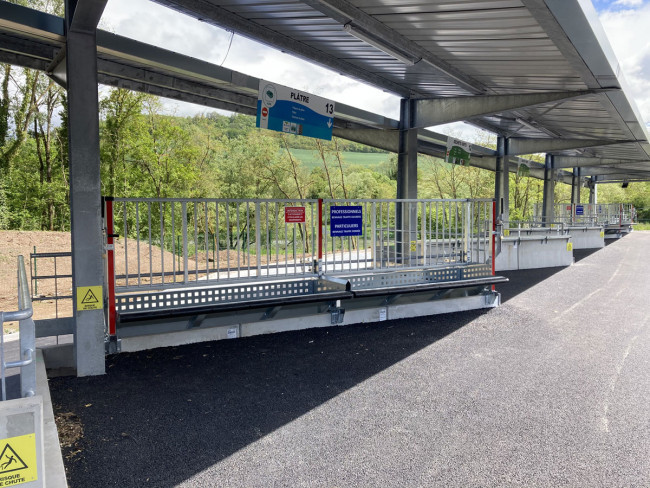 Cette solution de sécurisation de haut de quai de déchèteries permet la dépose de gravats sans risque de chute dans la benne, aussi bien pour les particuliers que pour les professionnels lors du bennage.