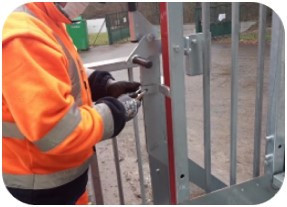 Zéro risque de chute. L’agent n’est jamais face à une zone ouverte. Des leviers de chaque côté du quai permettent le pilotage de l’ouverture des trappes. Le levier gauche pilote la trappe de et le levier de droite pilote la trappe de gauche. Quand les manipulations sont finies, le dispositif de verrouillage sera cadenassable afin qu’aucun usager ne puisse manipuler l’équipement. En face avant, la trémie est équipée de défenses en caoutchouc.