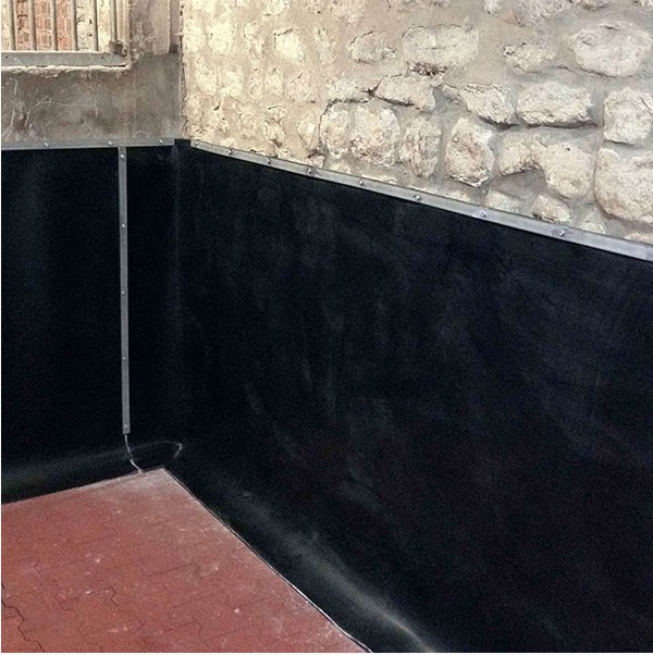 - Tapis mural de protection disposant d’une face noire, lisse, résistante et imperméable. Constitué de deux plis textiles permettant de mettre en place un double blindage.