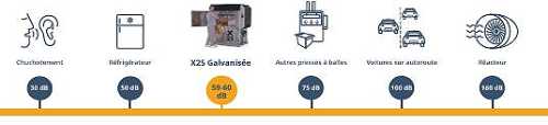 Avec un niveau sonore de 59-60 dB, cette presse est silencieuse, ce qui la rend adaptée aux environnements de travail. Le voyant de balle pleine et l'éjection automatique simplifie l'utilisation quotidienne.