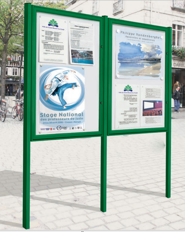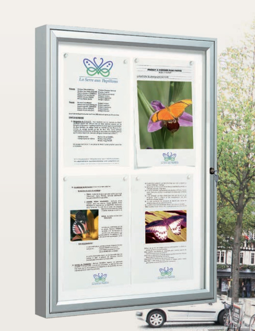 Nos vitrines sont adaptées pour une fixation murale ou sur poteaux, avec aimants inclus pour faciliter la mise à jour de l’affichage.