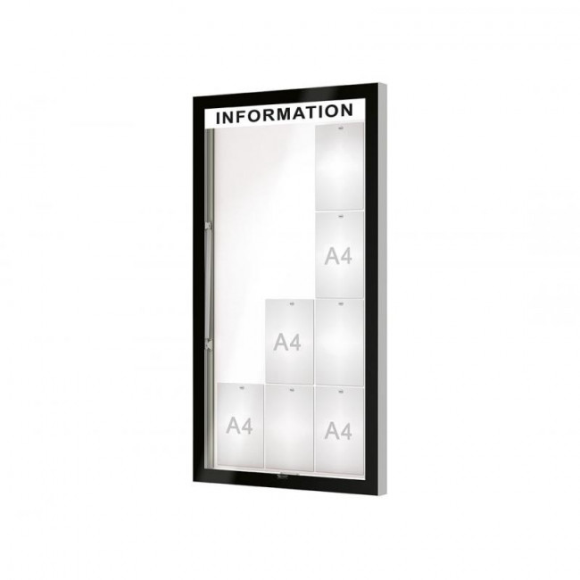 Vous avez la possibilité d'opter pour un bandeau intérieur adhésif "INFORMATION" de 100 mm de hauteur, collé en usine, pour identifier clairement la fonction de votre vitrine d'information extérieure.