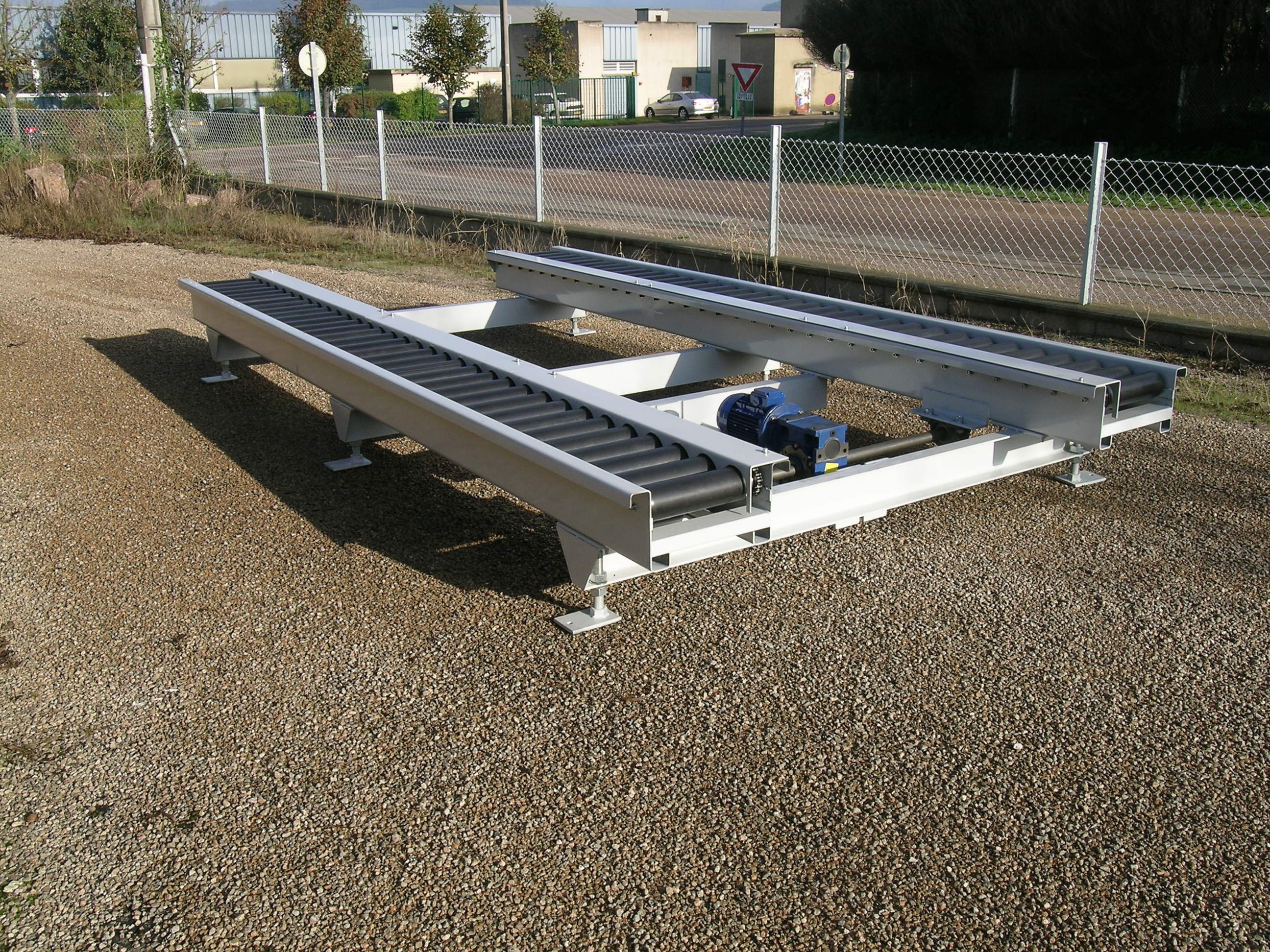 2 convoyeurs à rouleau non motorisé,avec une hauteur réglable avec inclinaison sur une charges faible.
