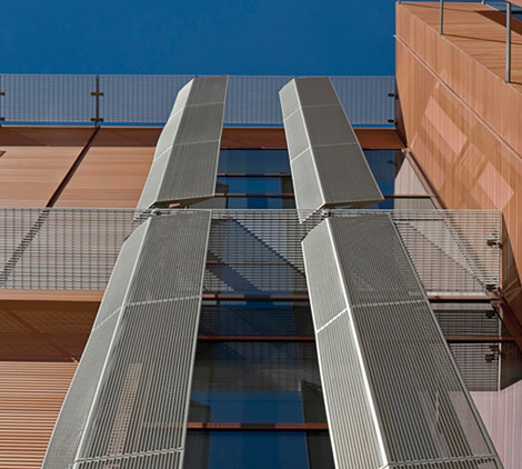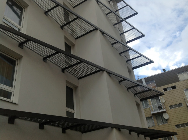 Pour plus de créativité dans l’esthétisme d’un bâtiment, vous pouvez compléter votre façade avec du caillebotis pressé pour façade avec alignement des mailles.