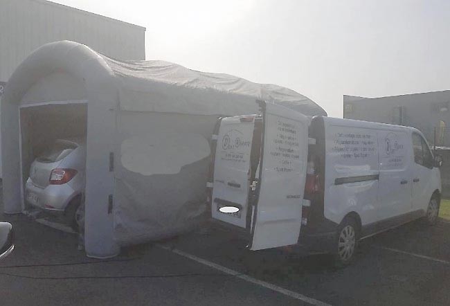 La cabine peinture gonflable pour carrosserie à domicile ou express est un équipement particulièrement adapté à un usage extérieur pour peindre une une automobile dans des conditions optimales.