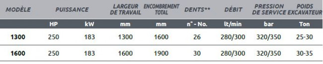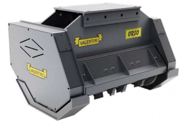 Le broyeur pour pelle VALENTINI OR-ORSO est idéal pour broyer les ronciers, les buissons , les branches, les arbustes, les rémanents, les arbres et les souches jusqu’à 500 mm de diamètre. Il est muni d’un rotor à marteaux fixes deux pointes au carbure de tungstène réversibles (utilisable 2 fois). Il existe en deux largeurs de travail 1300 mm et 1600 mm. Il se monte sur des pelles d’un poids de 25 à 35 tonnes et d’une puissance allant jusqu’à 250 cv. Il faut un débit d’huile hydraulique de 280 / 300 litres par minute pour pouvoir l’entraîner. Le rotor tourne à une vitesse de 2200 à 2400 tours par minute. C’est le plus gros modèle de la gamme des broyeurs de pelle à entraînement hydraulique VALENTINI. Il produit un broyat fin et homogène.