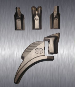 Plaques de contre-coupe en Hardox 500/550 présente à l’intérieur de la chambre de broyage & sur la porte arrière