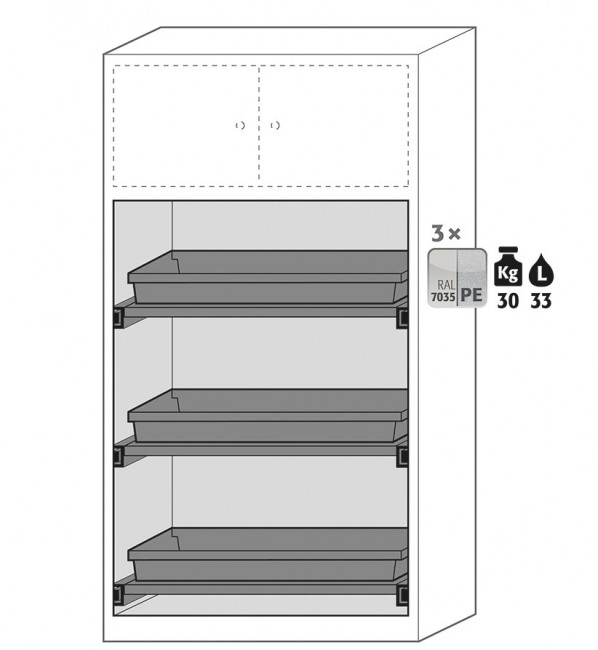 Avec un caisson de sécurité de type 30 pour le stockage sécurisé de petites quantités de matières dangereuses inflammables. |