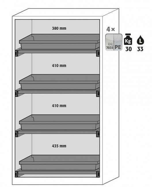 Fiche technique - Armoire de stockage sécurisé pour produits chimiques - Portes battantes - L.810 mm