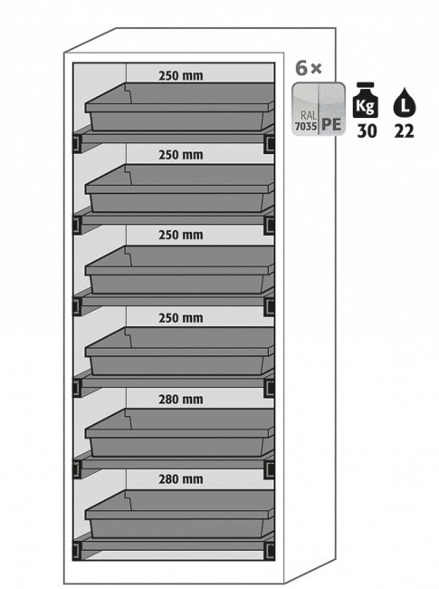 Disponible en option avec un caisson de sécurité de type 30 pour le stockage sécurisé de petites quantités de matières dangereuses inflammables.