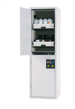 1 x coffret pour acide fluorhydrique charnières de porte à gauche, incl. bac de rétention en PE,