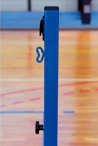 La manipulation se limite à la mise en place des poteaux dans les fourreaux, au réglage du filet et à sa tension, pour une bascule rapide d’une configuration multisports vers une configuration badminton.