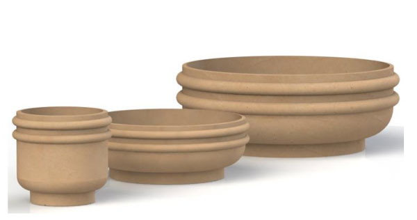 - Vasque cylindrique ornée dans la partie supérieure de 2 anneaux et base galbée reposant sur un pied en retrait.