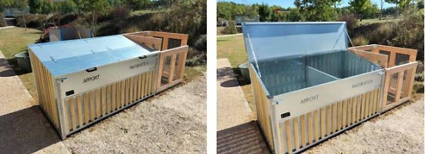 Le composteur en bois et métal est conçu pour accueillir les déchets organiques dans un cadre collectif ou semi-collectif.