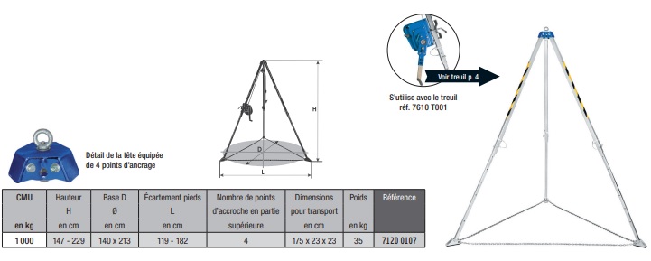 Avec une capacité de charge maximale de 1000 kg, ce trépied est parfait pour les tâches exigeantes.