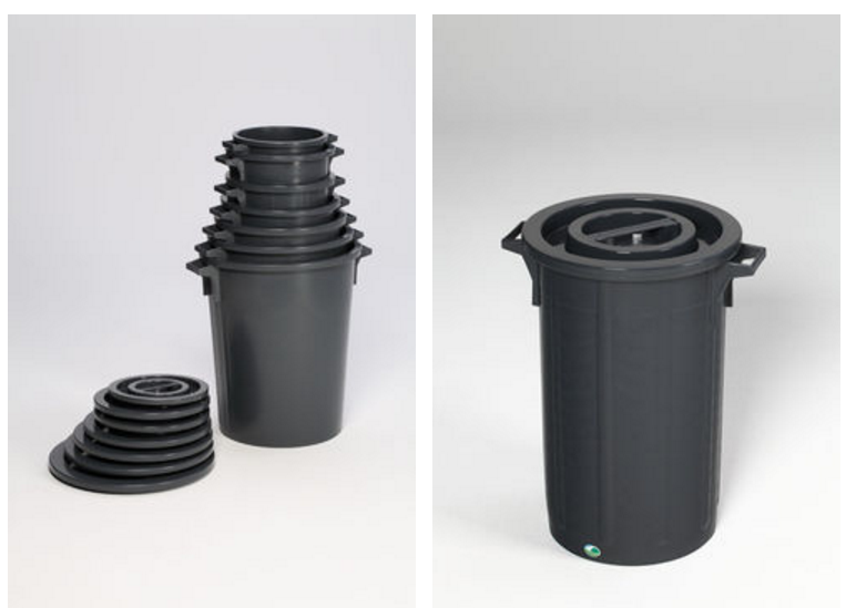 en polyéthylène recyclable , proposée en 2 modèles : 30 et 45 litres.
