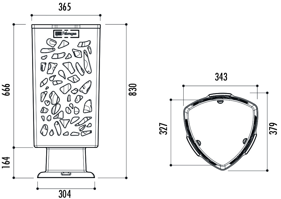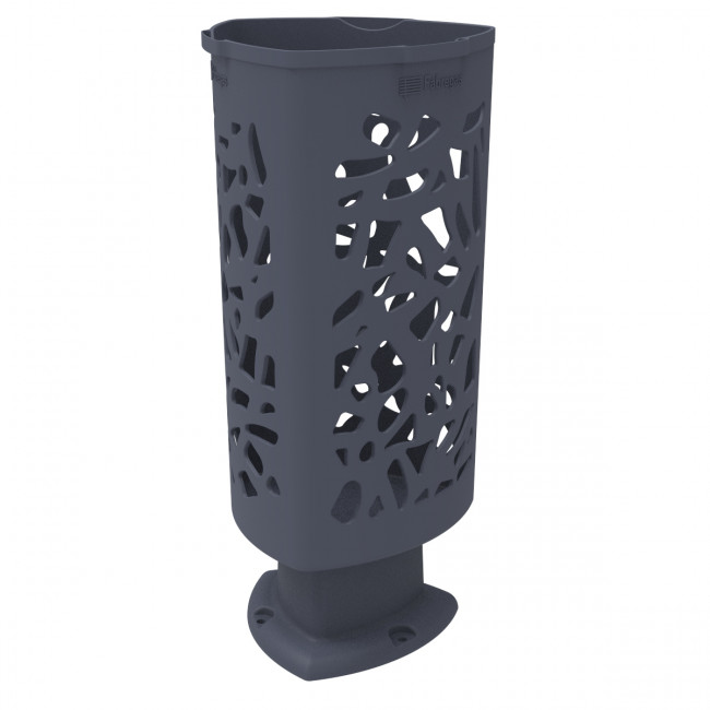 Capacité : 57,5 L Polyéthylène haute densité, (HDPE), 100 % recyclable Dimensions : H 830 x L 365 mm À fixer au sol, visserie fournie