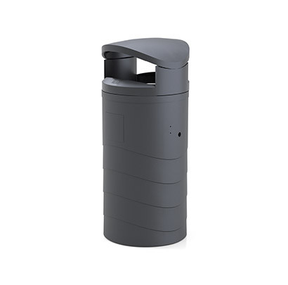La Milenium 50L en PEHD est fixée à un poteau et possède un couvercle qui peut être équipé d'un cendrier.