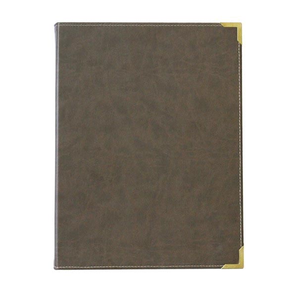 - Aspect cuir marron, coins renforcés