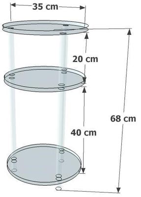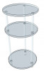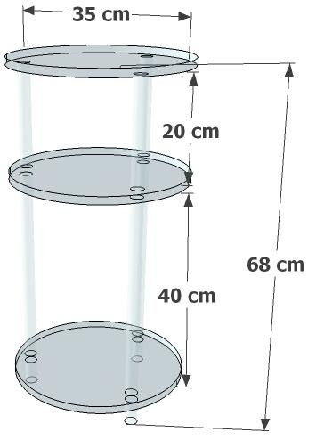 Ce meuble se distingue par ses trois plateaux de 35 cm de diamètre, espacés respectivement de 40 cm et 20 cm, offrant ainsi plusieurs niveaux de rangement ou de présentation.