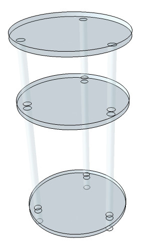 Design moderne avec trois plateaux ronds pour un espace de rangement modulable.