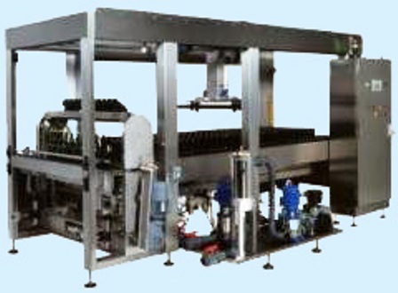 Déchargement des bouteilles sur le convoyeur par retourné mécanique à ventouses ou à membrane. Une fois déchargées, les plateaux sont ramenés au poste chargement par un chariot place au dessus de l'appareil. Le tableau de bord, situé sur l'armoire permet de contrôler toutes les fonctions de la machine et celles du groupe de froid. Un chargement automatique est disponible en option. Cadence : de 700 à 4000 bouteilles par heure Le dimensionnement pourra être adapté à vos locaux. En option, cette machine permet de traiter tous les format ainsi que les bouteilles spéciales.