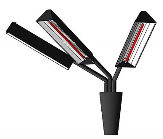 Complément des lustres chauffants, très efficace, elle est particulièrement adaptée aux zones latérales comme à celles où la suspension au plafond est impossible.