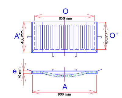- O : Dimension ouverture du passage : 845 x 370 mm