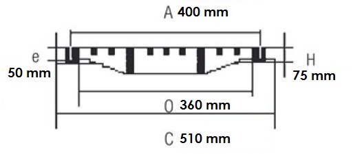 Réf. TC : 475701315Grille de caniveau concave avec cadre D 400 D 400 En fonte 500 x 500 80 70 Standard