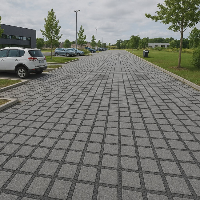La dalle stabilisatrice en PVC une solution idéale pour accueillir des pavés béton et garantir la stabilités des sols tout en assurant l'infiltration naturelle des eaux pluviales.